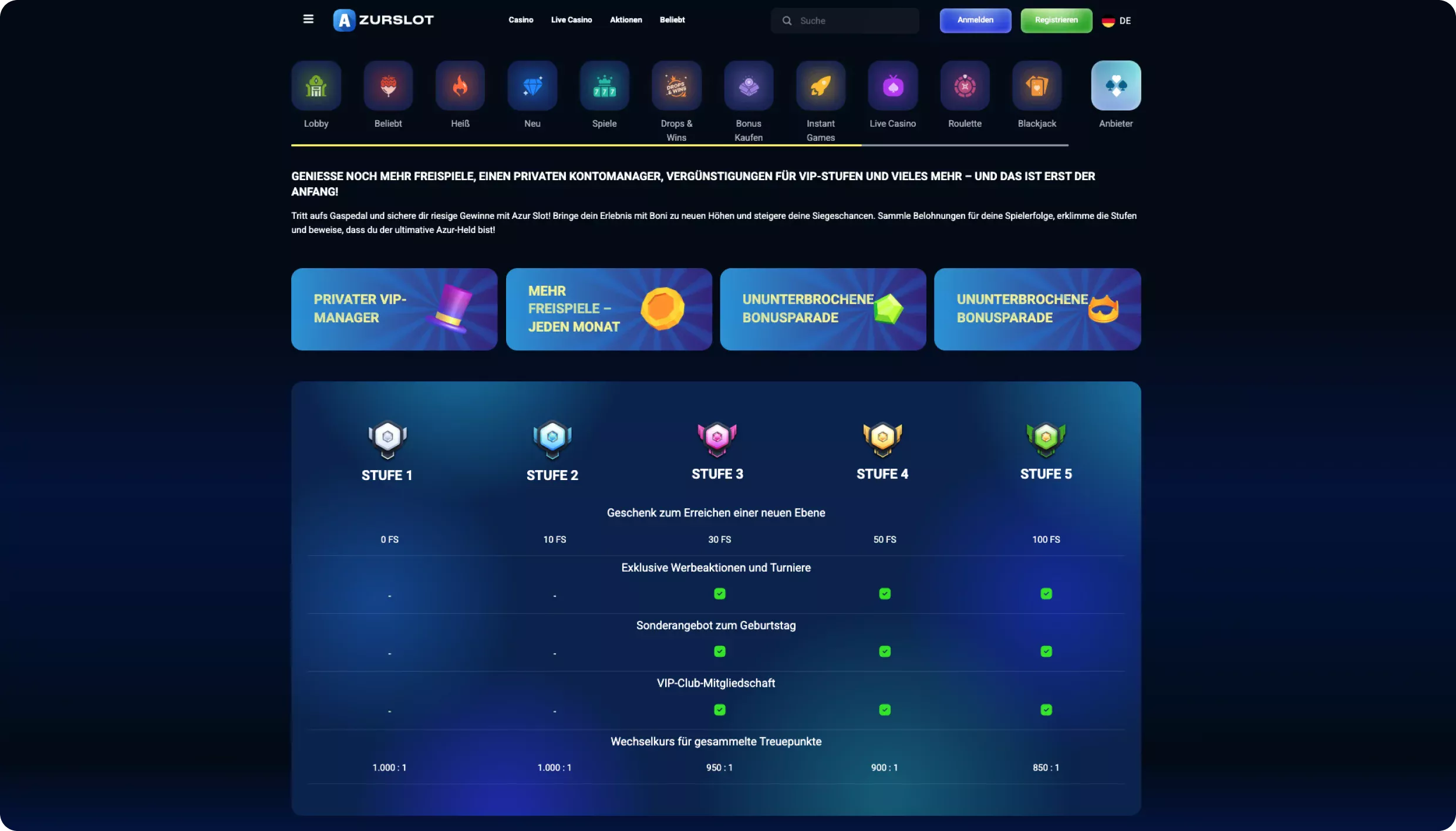 - Gestuftes VIP-Level-System mit steigenden Vorteilen